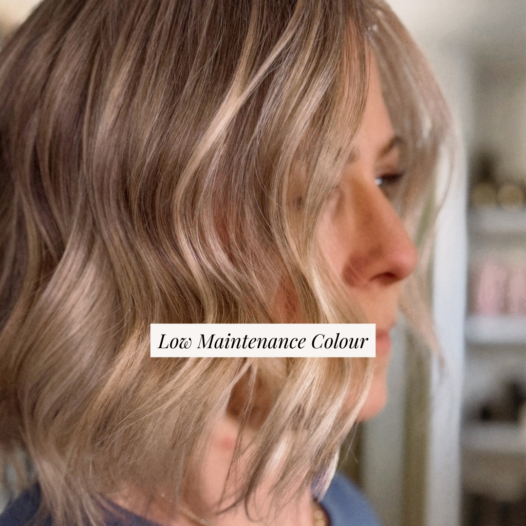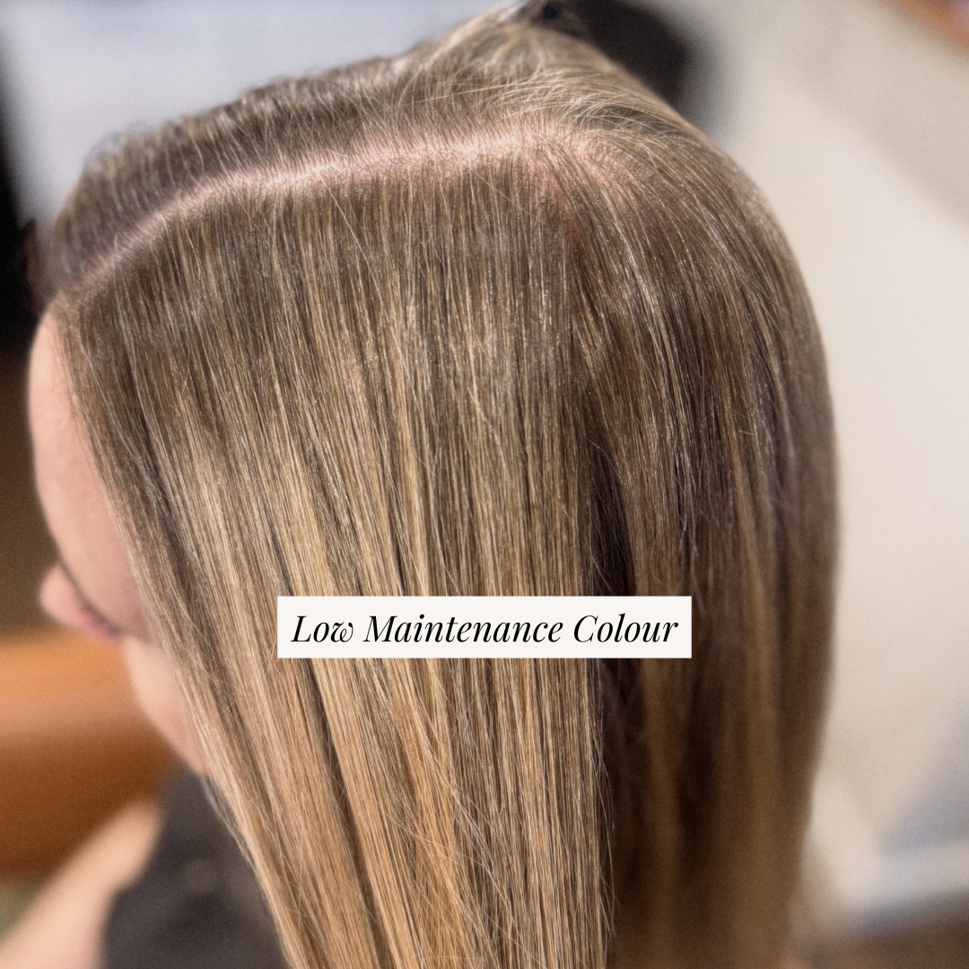 Feel like you’re always in the salon? Is your regrowth harsh or brassy? Low Maintenance Colour is designed for clients who want natural-looking colour that grows out beautifully with minimal upkeep. This service focuses on thoughtful colour placement and balanced tones that blend seamlessly with your natural hair, allowing you to extend the time between appointments. Ideal for those who prefer soft dimension, subtle brightness, or low-maintenance highlights that continue to look polished as your hair grows.
